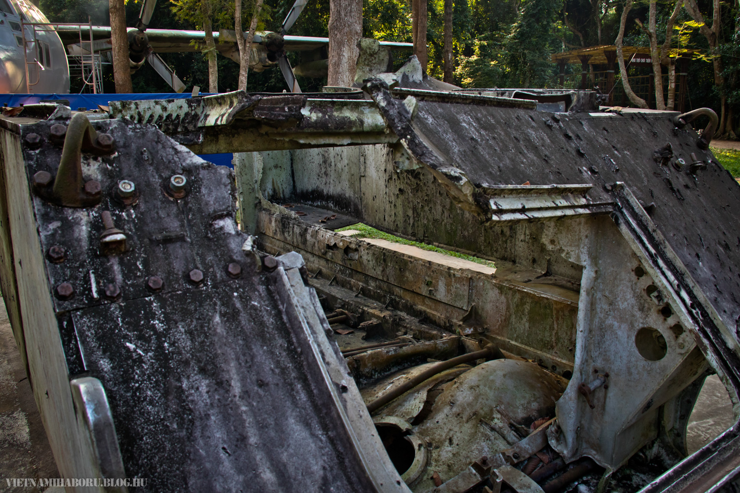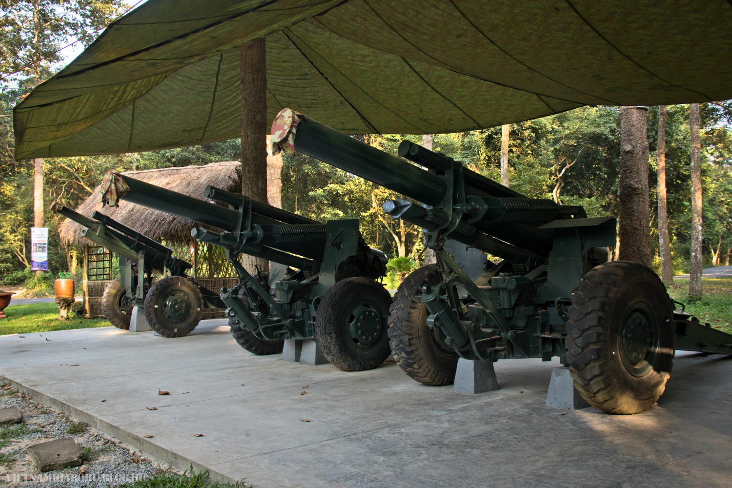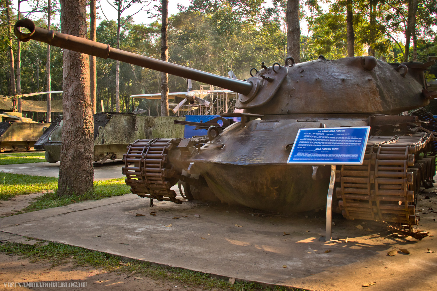 Az alagútkomplexumtól pár száz méterre egyébként egy épület is található, ahol fotókiállítást tekinthetünk meg. Erre ezúttal nem volt időnk, viszont a fényképeket két közepes kötet formájában megvásároltuk a boltban. Egy-két harceszközt, köztük egy MiG–21-est és egy MiG–17-est is kiállítottak itt. Valamivel arrébb amerikai gyártású járművek sorakoznak a fák alatt, például egy UH–1, egy C–130, egy M–48, sőt még lövegek is akadnak. Legtöbbjük állapota sajnos siralmas, de egy részük eleve sérülten vagy kiberhelt állapotban kerülhetett ide. A kijárat felé is találunk egy boltot, ahol a helyi kézműipari remekek mellett releváns anyagokat is vásárolhatunk.