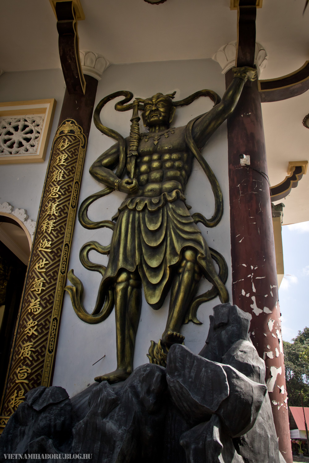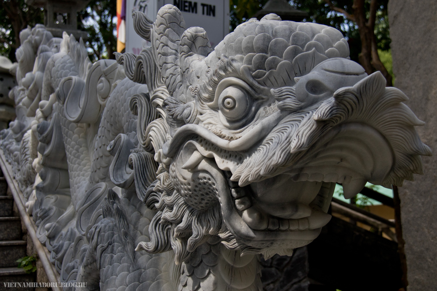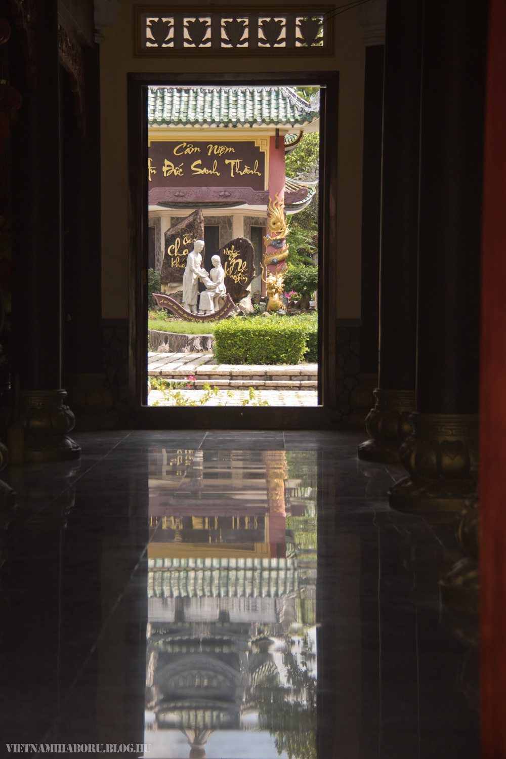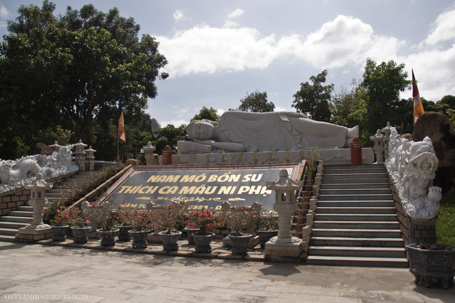 A város előtt nem sokkal beiktattunk egy megállót István ötletére, Chua Van Thongban. Itt egy buddhista központ található, ahova látogatóként is beléphetünk. A kerítésen belüli térségben sok mindent láthatunk, szentélyeket, templomot, monostort, szoborfaragó műhelyt, szobrokat...